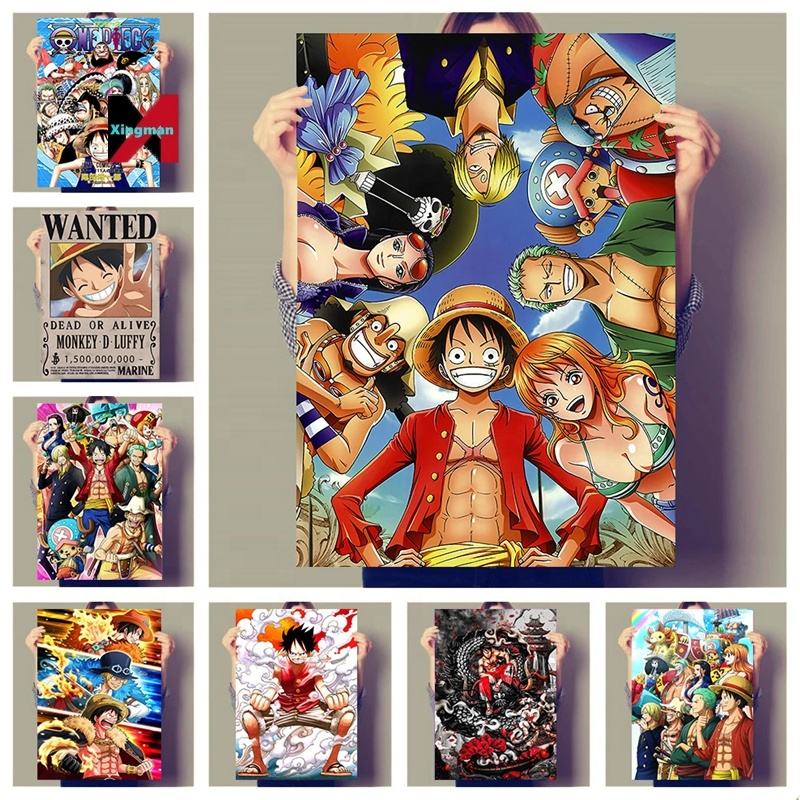 Affiche recherchée One Piece Luffy, impression murale de fond, vente en gros transfrontalière pour la décoration murale d'art d'anime à domicile, artisanat en plastique
