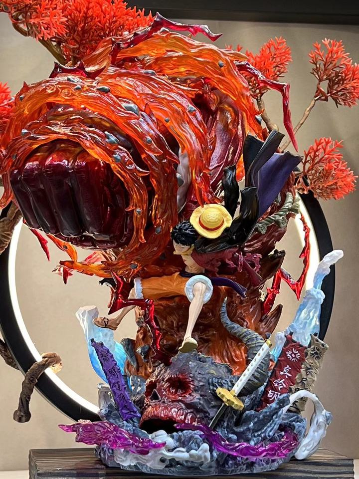 Figurines d'anime One Pieces 22 cm Monkey D Luffy Gear 3 Figurine d'action Hell Fire GK Statue avec lumière LED Figurine de modèle d'anime