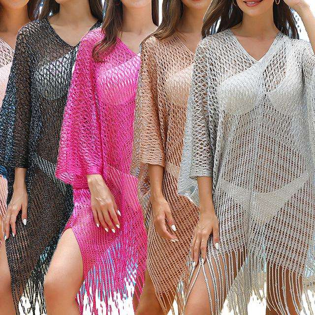 Taille Unique - Cache-maillot de bain ajouré style châle à franges pour la plage et les vacances