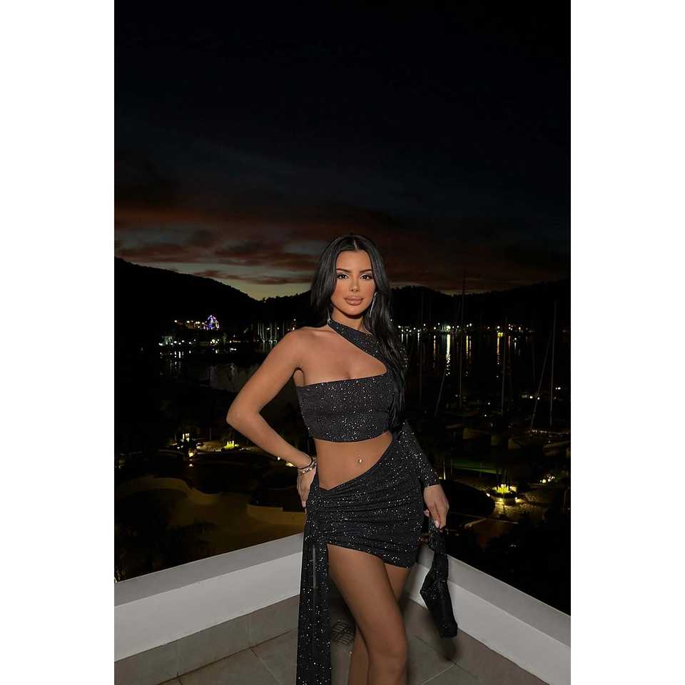 Robe de soirée asymétrique avec détail fenêtre, style Zoe, noire
