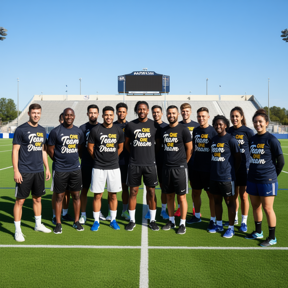 T-shirt One Team One Dream, vêtements promotionnels, col rond noir, taille adulte unisexe
