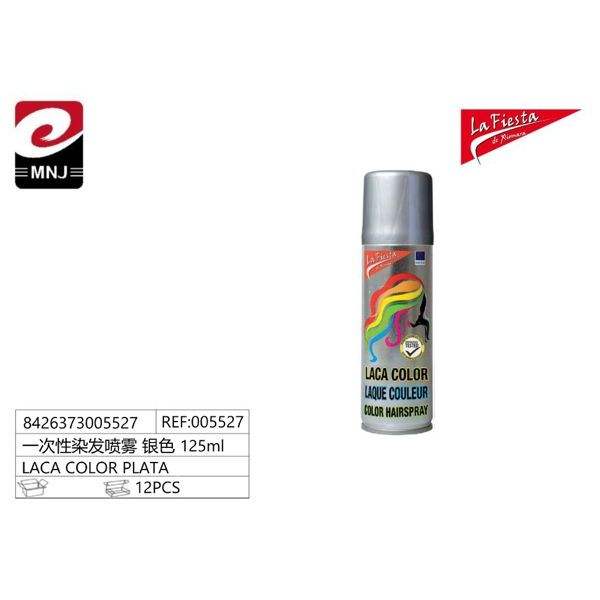 Spray colorant capillaire argenté LACA CAPILAR COLOR PLATA à usage unique pour les fêtes et les célébrations