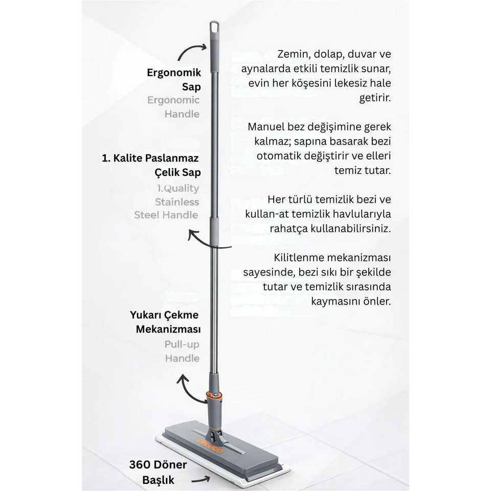 Serpillère plate auto-essoreuse One Touch avec manche télescopique, mécanisme de verrouillage automatique du tissu, capacité de 301-500 ml, durable, plus de 20 000 utilisations possibles