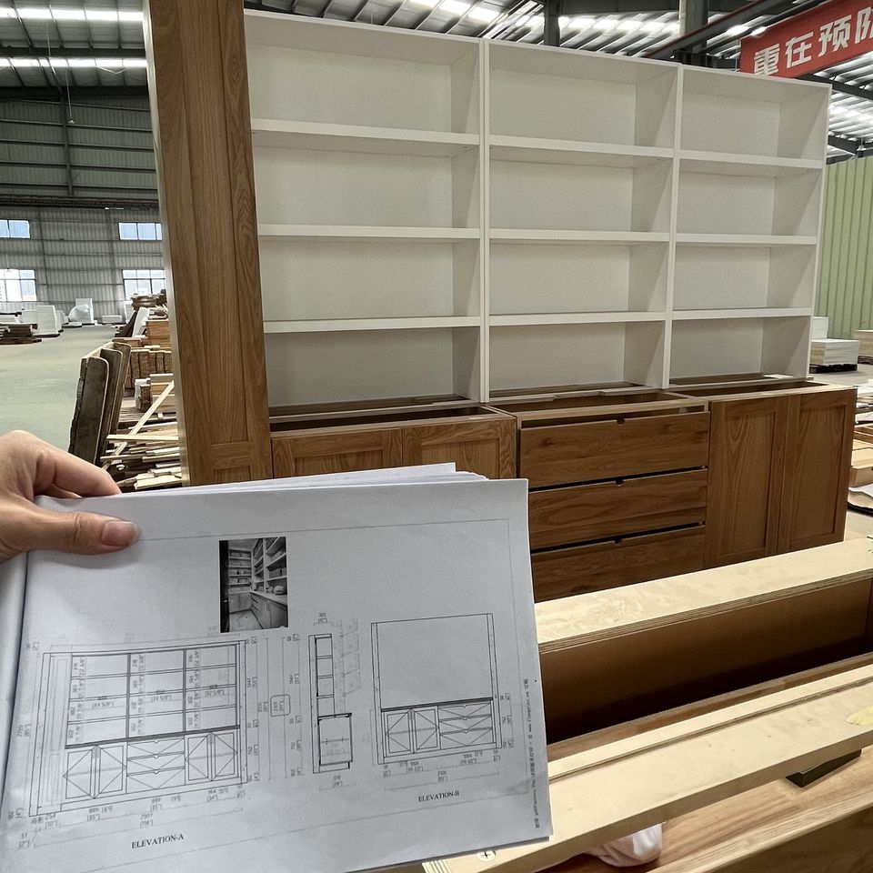 Service de conception à guichet unique Shaker à expresso moderne Armoires de cuisine avec panneaux en bois massif en céramique