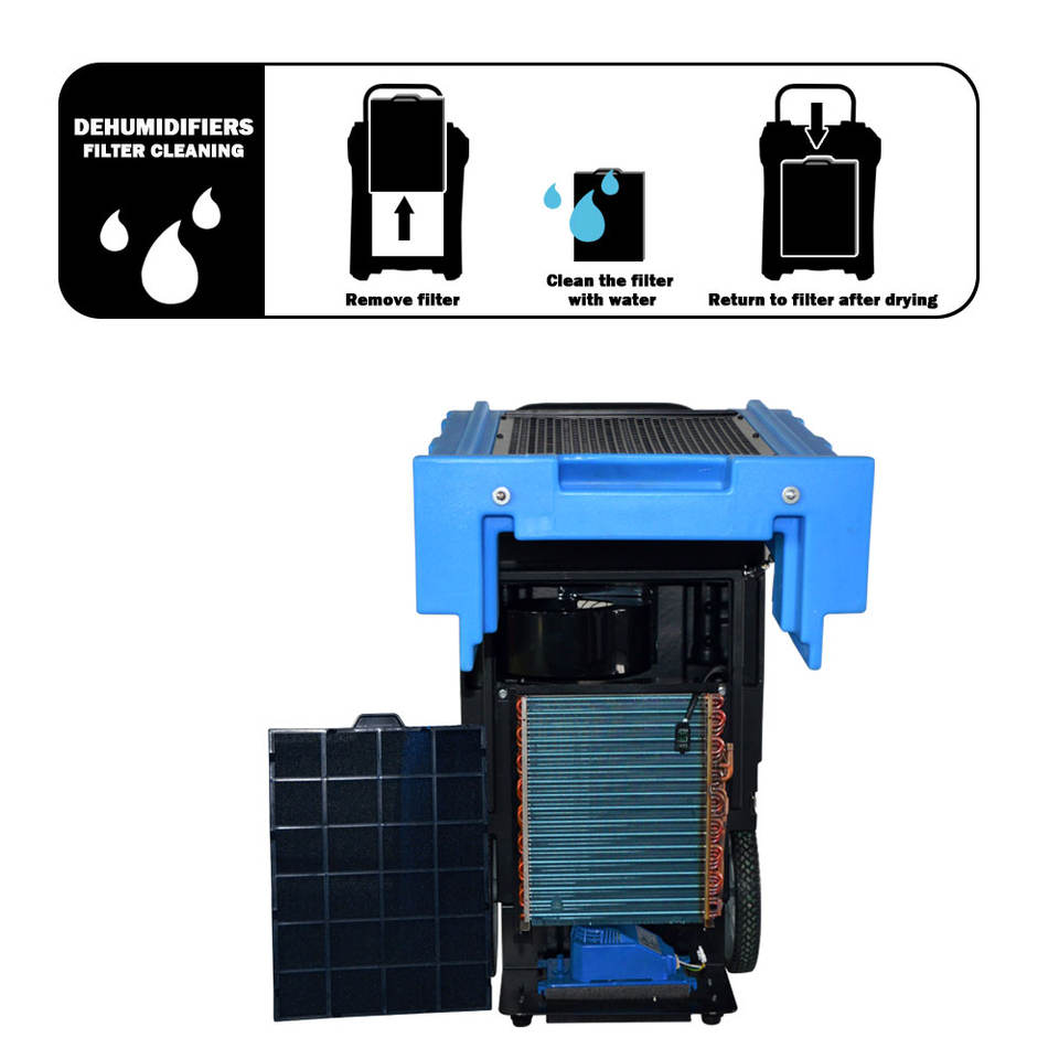 Humidistat réglable, Redémarrage automatique, Arrêt complet automatique du seau, Dégivrage automatique, Contrôle automatique de l'hygrostat, Connexion de vidange externe, Affichage LED, Filtre à air lavableFonction