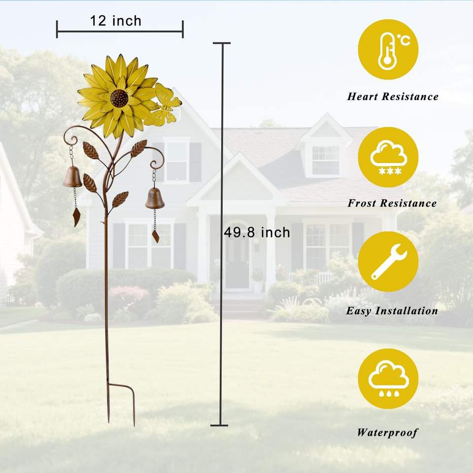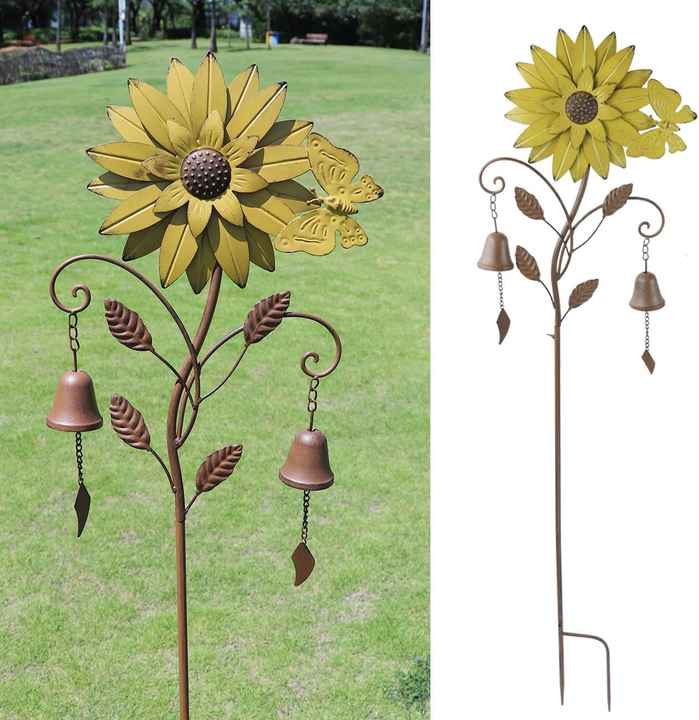 Nom du produit:Piquet de jardin tournesol et papillons en métal rubigineux avec clochettes