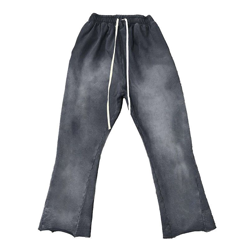 Pantalon de survêtement évasé 100% coton pour hommes personnalisé en ligne 2025 coton éponge française ourlet brut bord coupé délavé à l'acide délavé au soleil