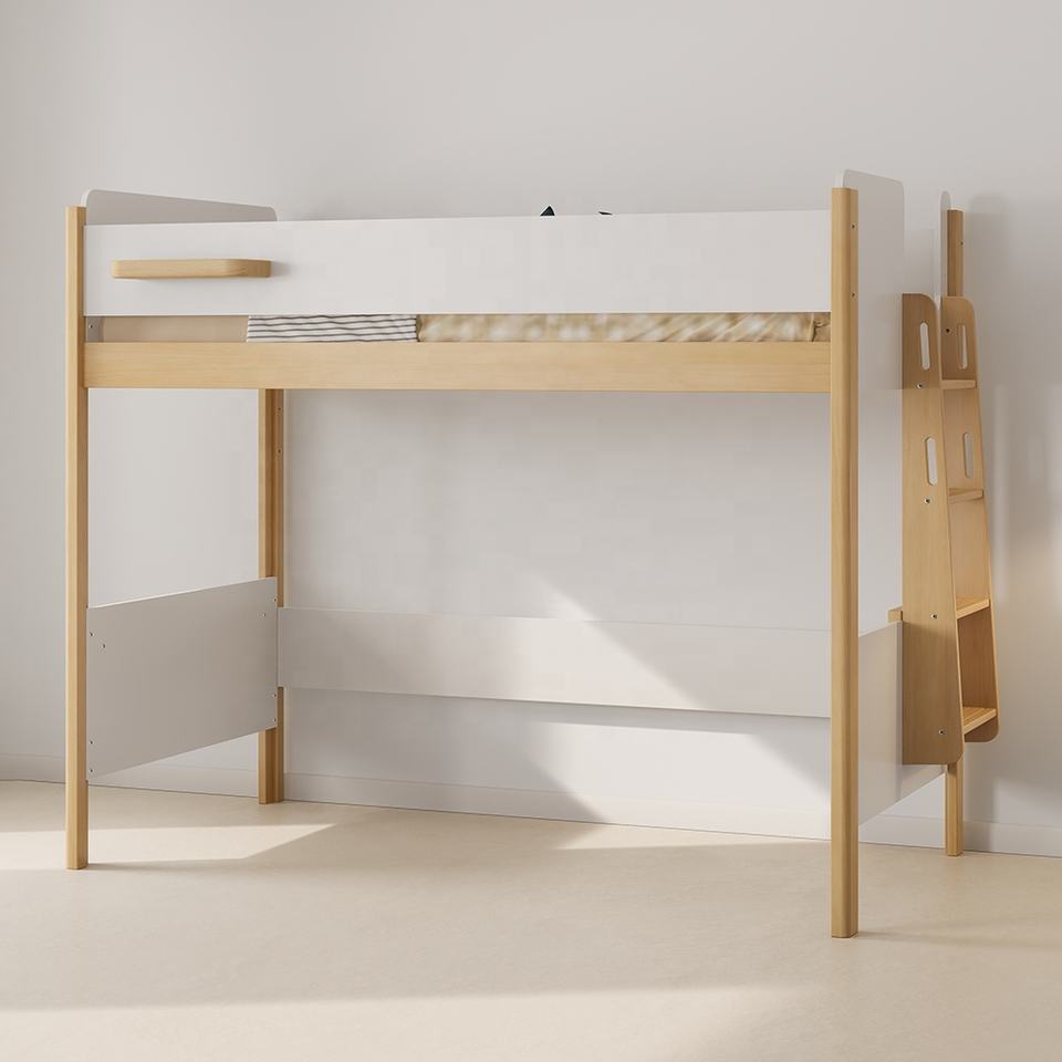 Description:Lit en bois de grenier d'enfants simples jumeaux de taille avec des escaliers