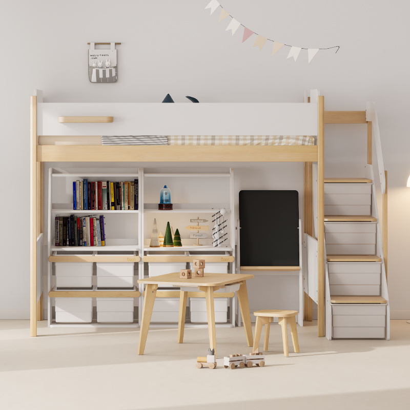 Nom du produit:Lit mezzanine simple avec échelle Natty escalier King