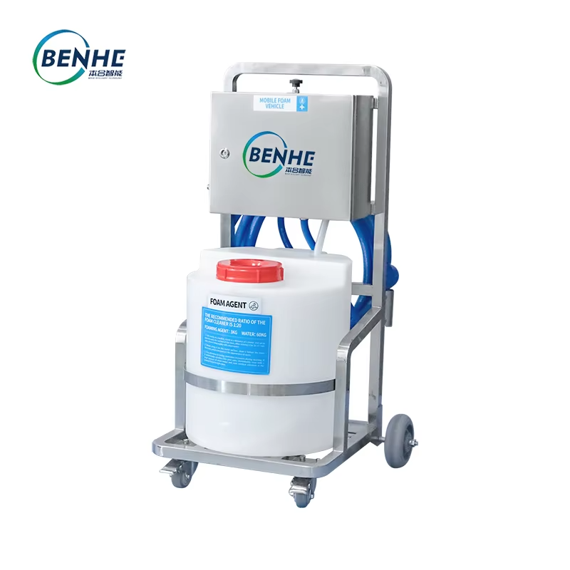 Machine de nettoyage mobile à pulvérisation de mousse pour cuisines centralisées, usines de transformation de viande et ateliers de transformation de produits aquatiques