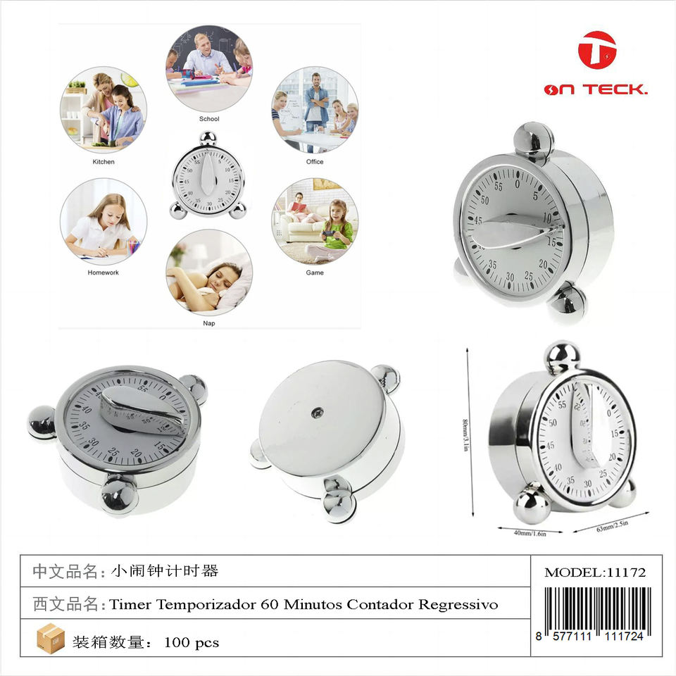 Minuteur de cuisine mécanique Ontek, petit, en métal, rond, compte à rebours de 60 minutes, pour la cuisson et la pâtisserie