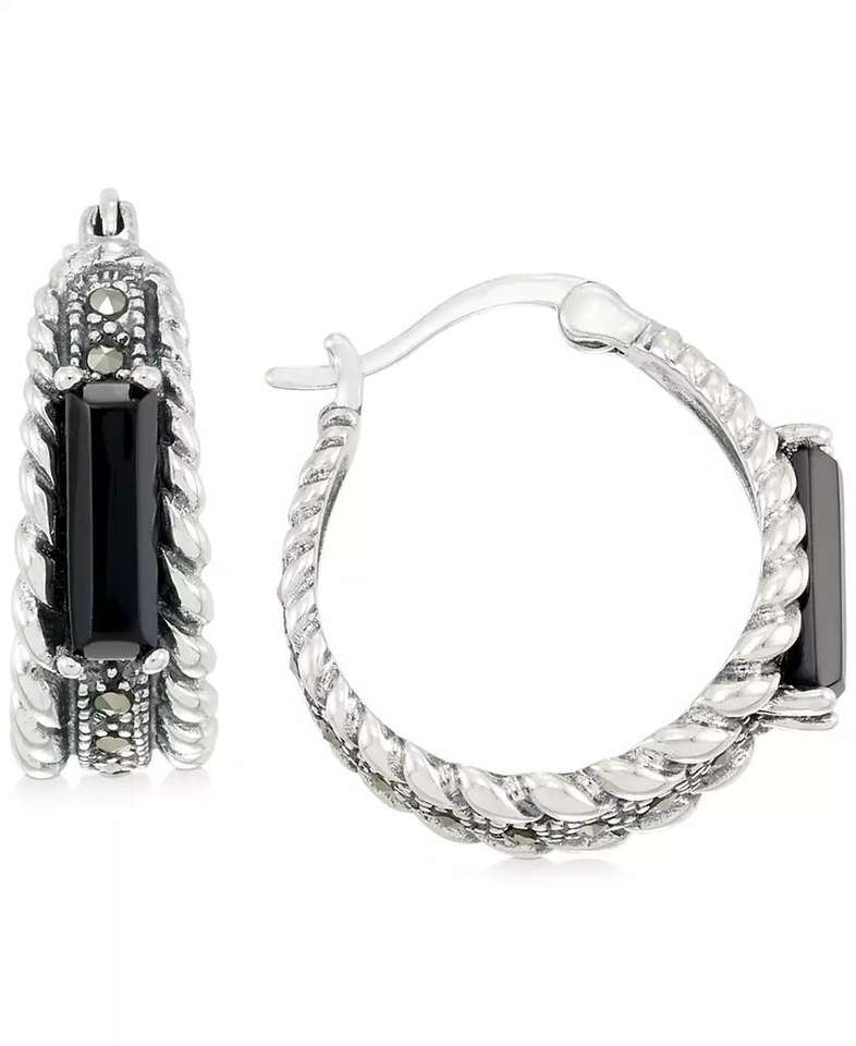 Boucles d'oreilles en argent sterling avec onyx (3-1/2x9-1/2mm) et marcassite | Macy's