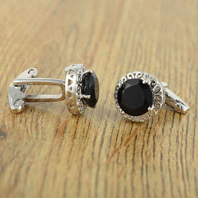 Onyx Cufflinks For Men Black Gemstone Cuff Links 925 Sterling Silver Handmade Jewelry Wedding Gift For Him Formal Accessories
