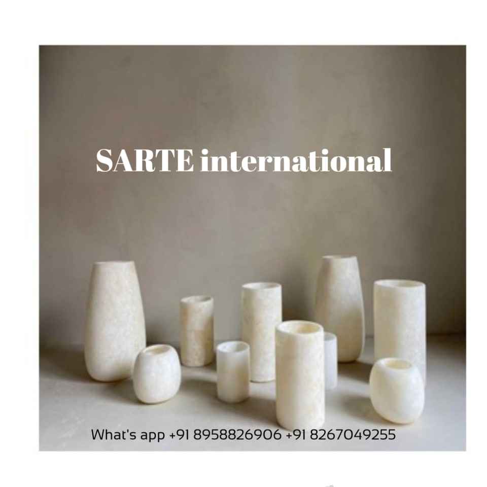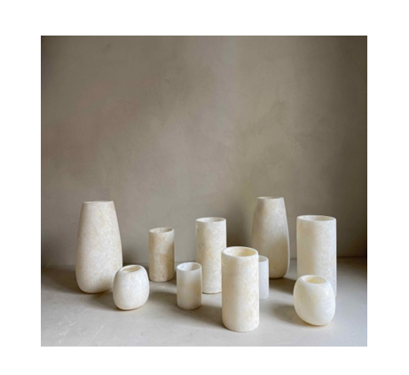 Bougeoirs modernes blancs en onyx et albâtre faits à la main, formes cylindriques et personnalisées, vente en gros directe d'usine indienne pour la décoration intérieure