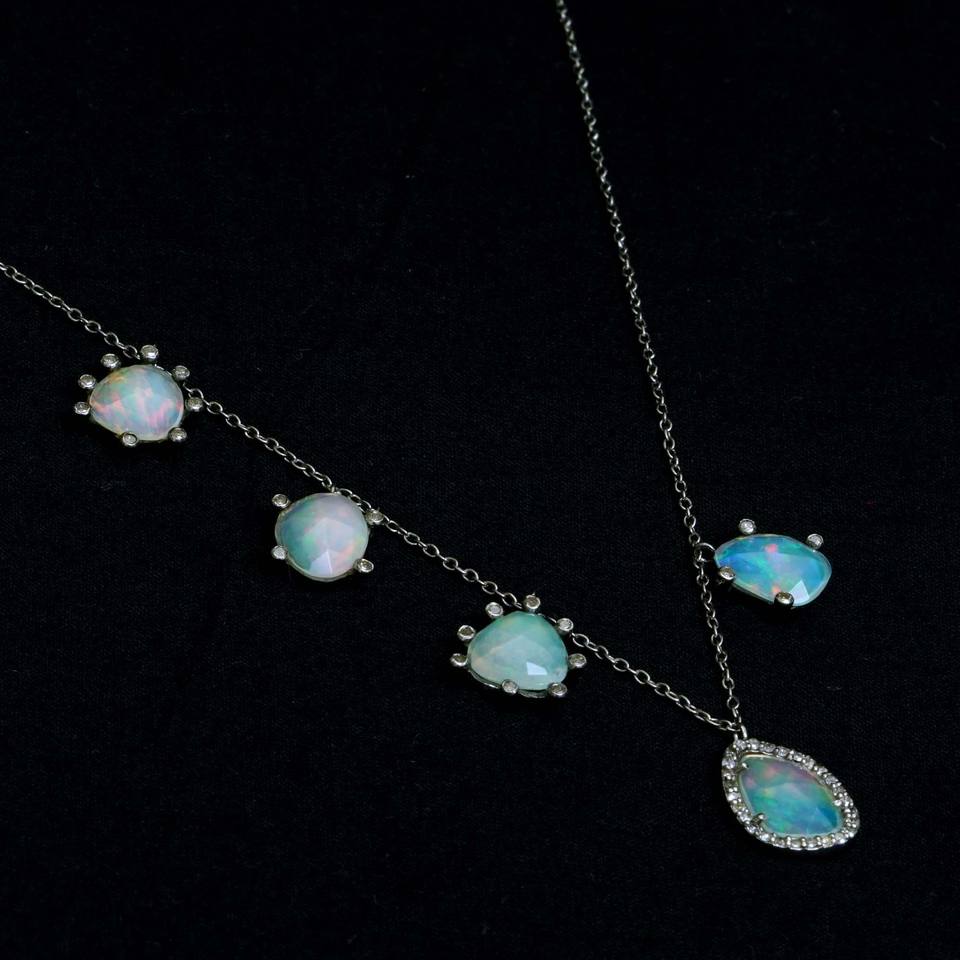 Collier ras du cou avec pierres précieuses naturelles en opale naturelle, argent 925, collier de styliste, 925, vente en gros