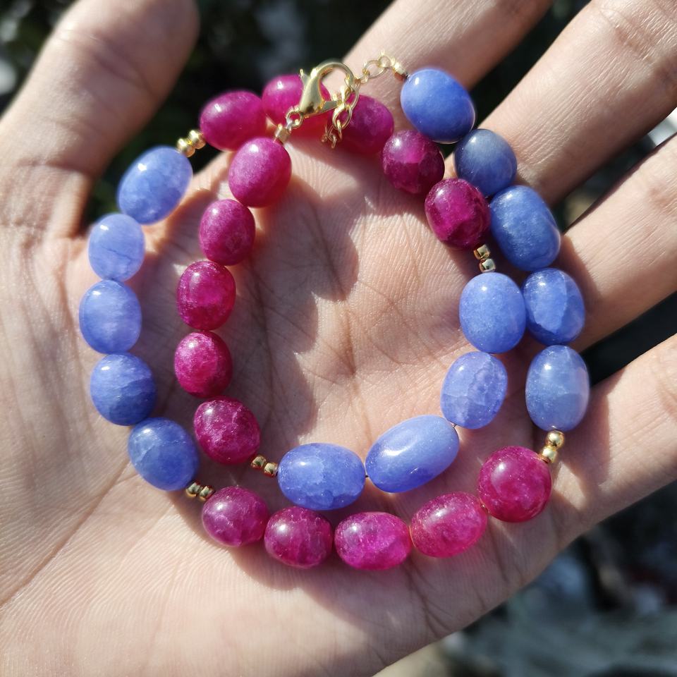 Collier en quartz opale, perles rondes lisses, collier ras du cou, pierres précieuses bleues et rouges, collier à perles délicat, cadeau fait à la main pour elle