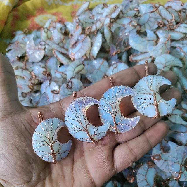 Collier Lune Opalite avec pendentif enroulé en fil de cuivre Design Arbre de Vie avec pierres de chakra semi-précieuses et cristaux