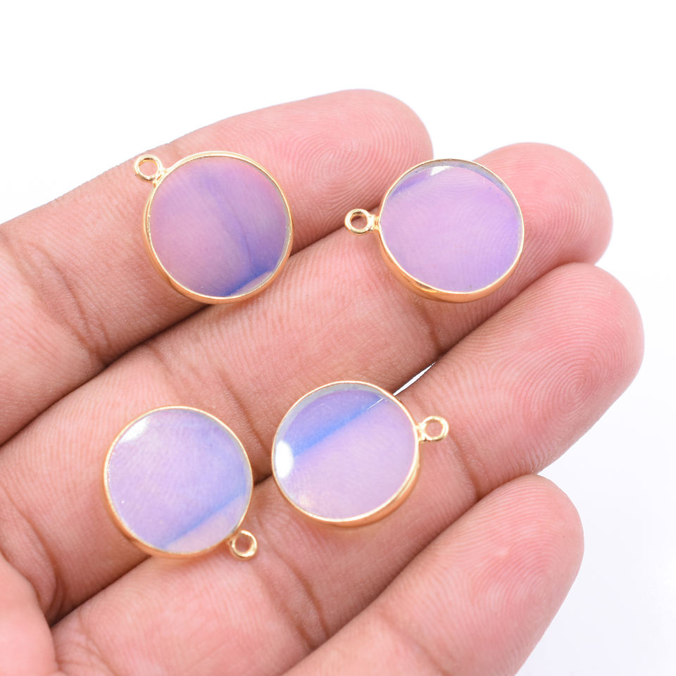 Nom de la pierre:Pendentif plaqué or avec lunette en argent de forme ronde en opalite