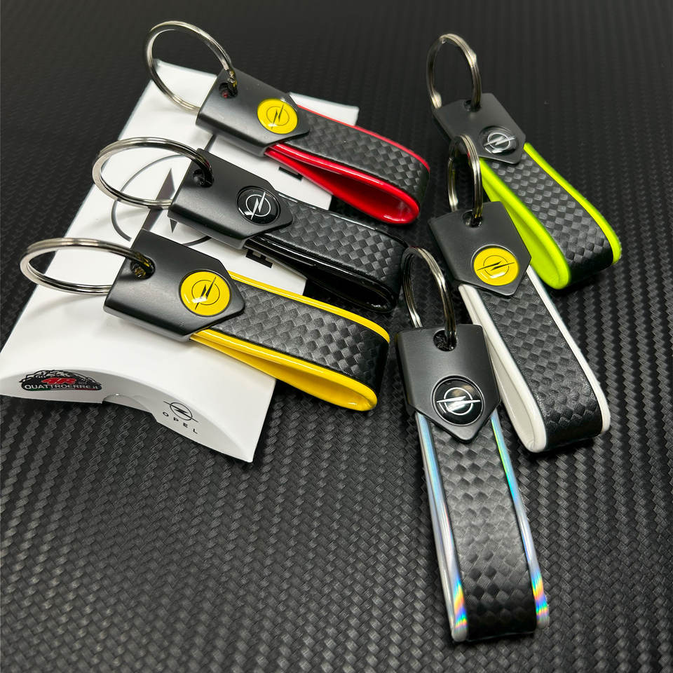 Porte-clés de voiture Opel en alliage de zinc 90x20mm blanc carbone avec logo noir compatible avec BYD Volvo Mercedes Benz