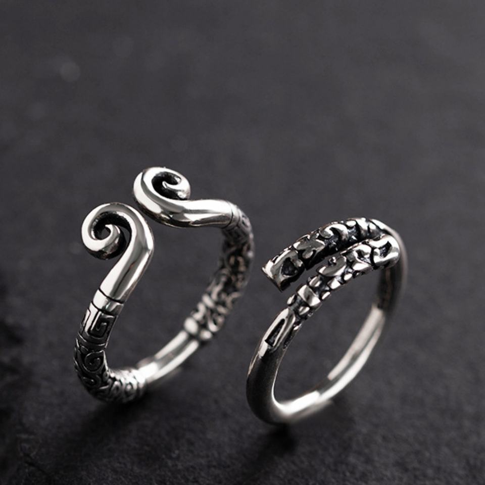 Bague ajustable en laiton style chinois sculptée, motif tourbillon, pour couple, polyvalente, tendance, pour usage quotidien ou mariage