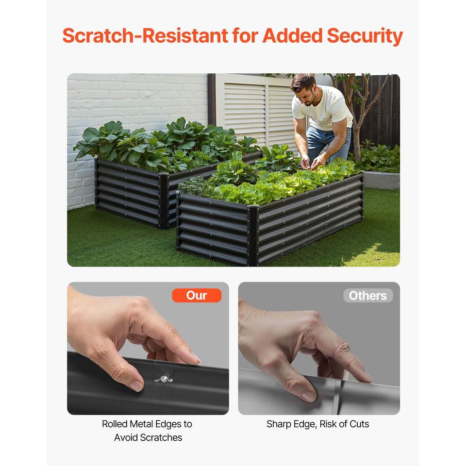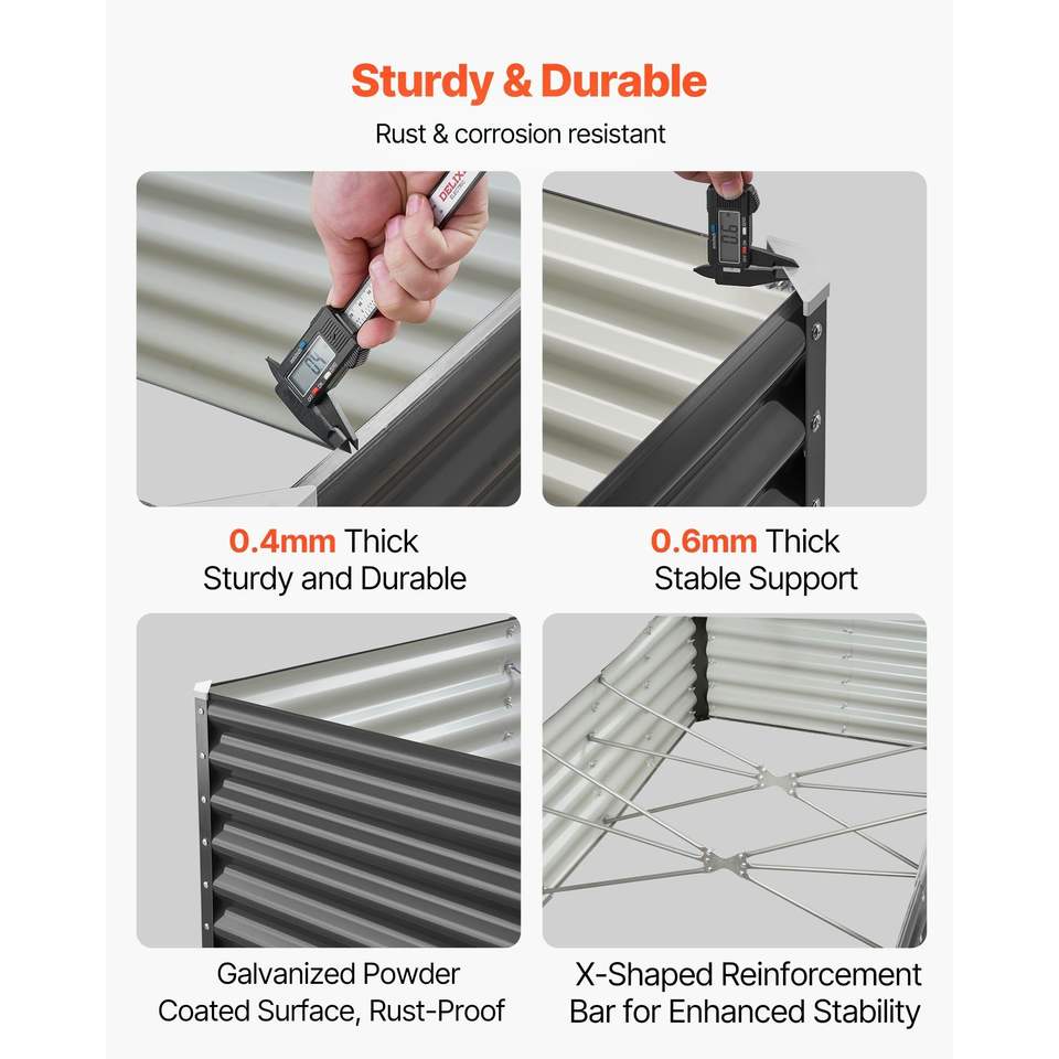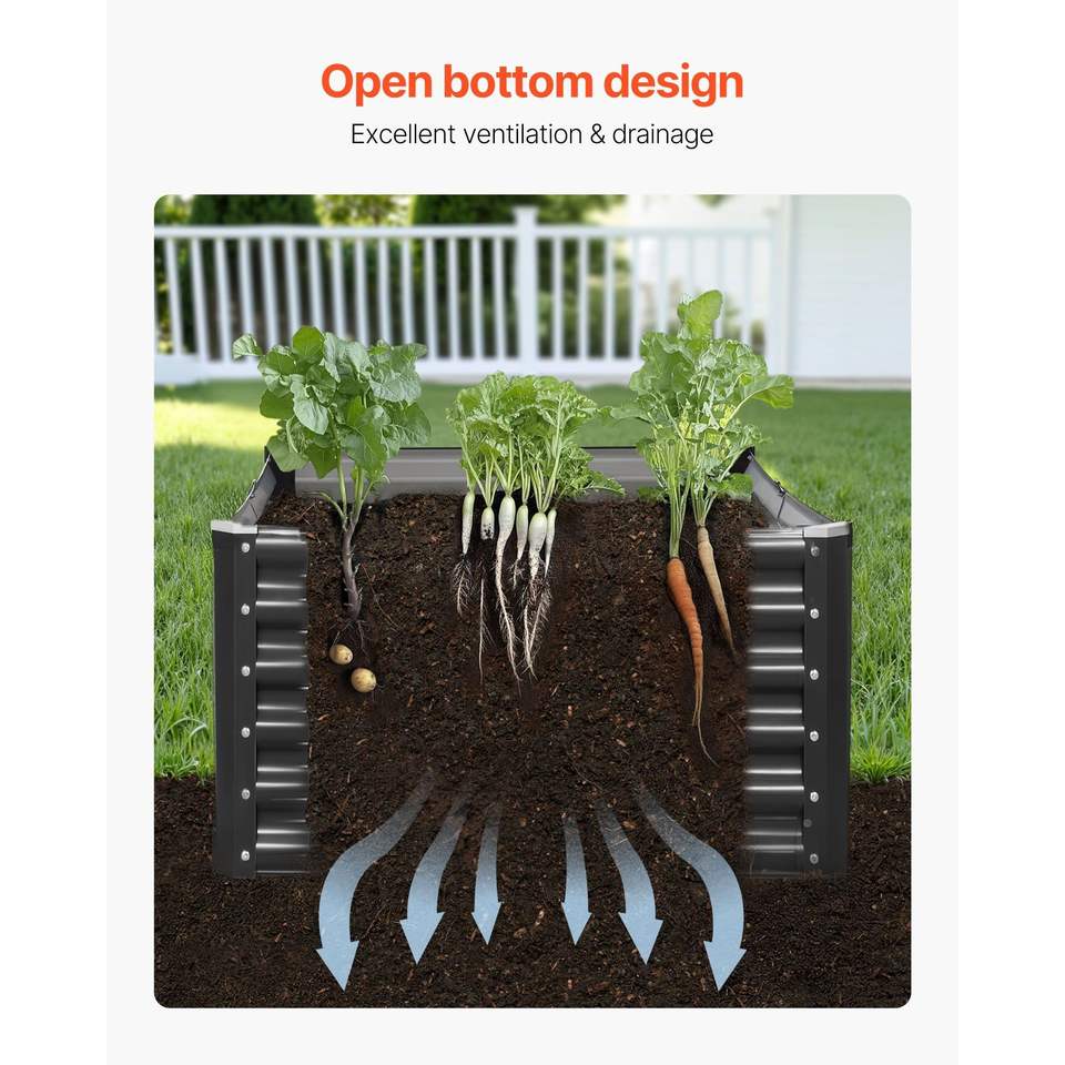 Bac à fleurs et jardinière surélevée en métal galvanisé pour extérieur, grande taille, design à fond ouvert, 6 x 3 x 1,4 pieds