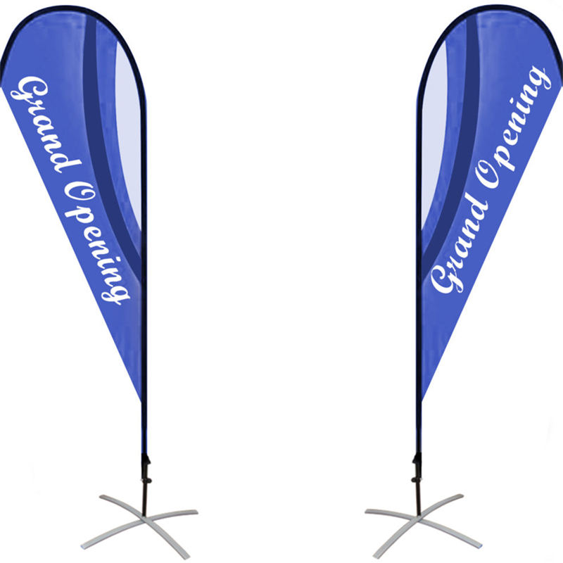 Drapeau en forme de goutte d'eau à conception ouverte avec poteau et base pour la promotion en plein air