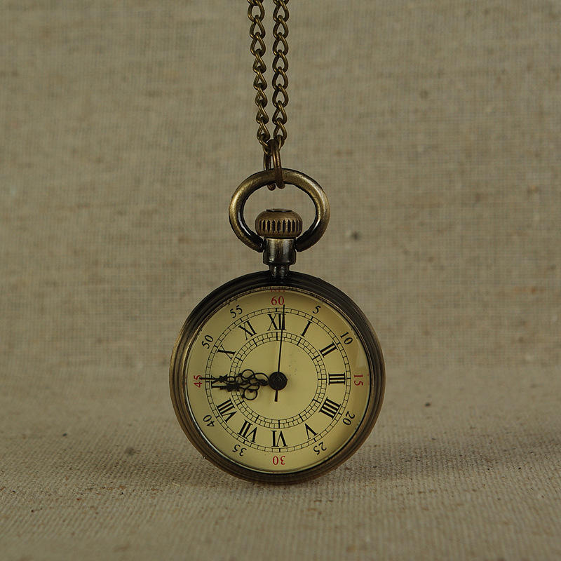 Montre de poche analogique à l'ancienne en métal bronze de style romain à visage ouvert avec chaîne de collier pour hommes