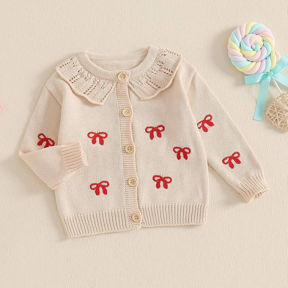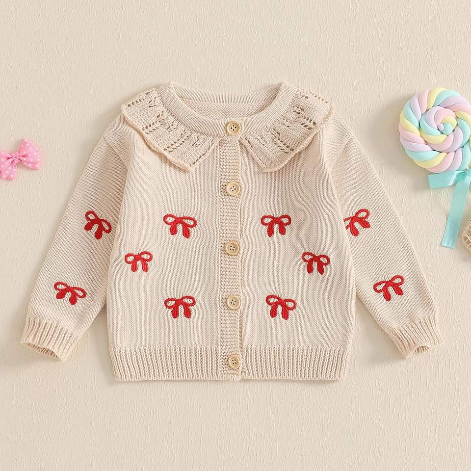 Ouvert avant bouton laine tricots manteau pour bébé filles à manches longues Cardigan pull pour enfant en bas âge hiver automne fleurs imprimer printemps