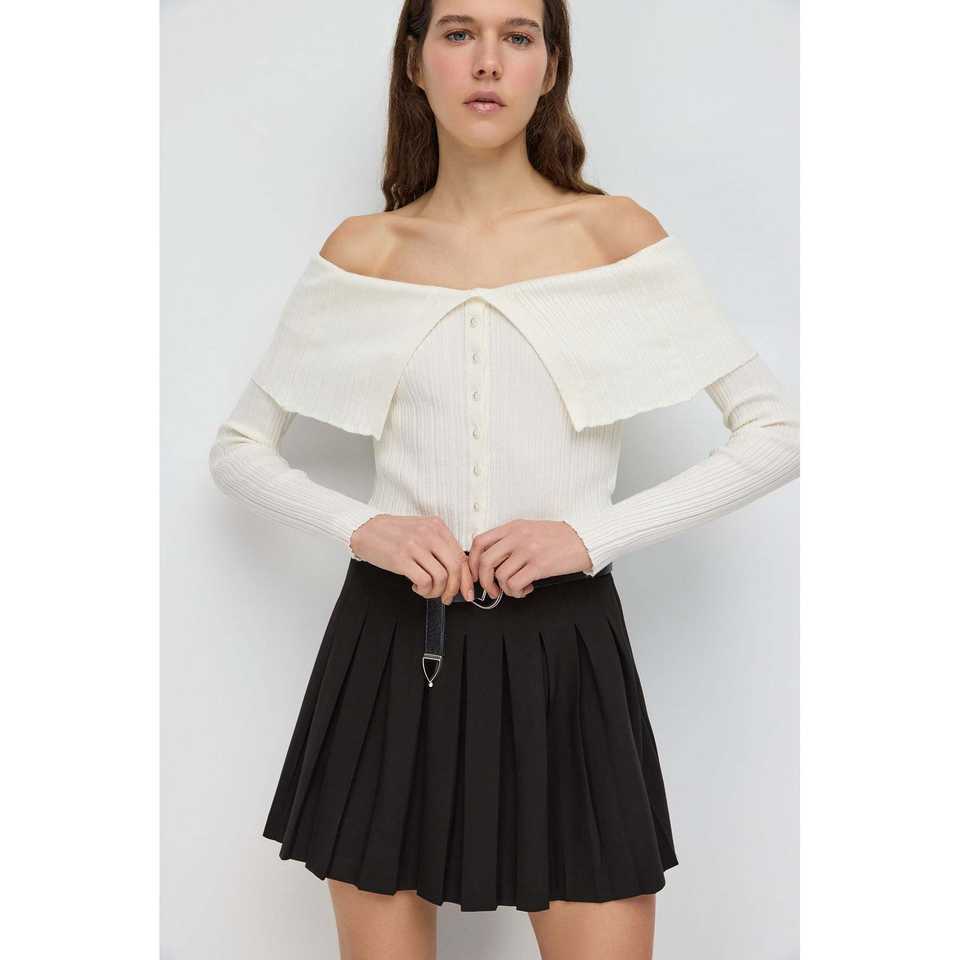 Haut en tricot en viscose/polyester à épaules dénudées, respirant, décontracté, pour femmes, pour l'automne/l'hiver