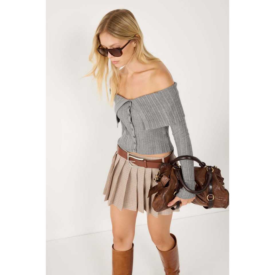 Pull décontracté pour femme en maille à épaules dénudées avec nœud, respirant, pour l'automne/hiver, motif imprimé avec logo sur le devant
