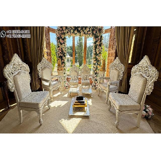 Open Wedding Mandap White Wooden Carved ChairsProduct name