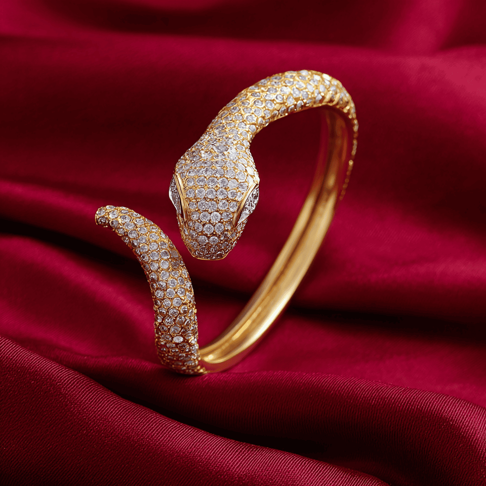 Bracelet jonc ouvert serpent zircon bracelet personnalisé OEM ODM bijoux en laiton plaqué or