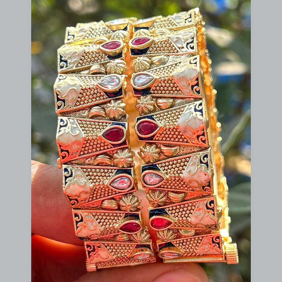 Ensemble de bracelets ouvrables avec pierres Pota plaquées or et décorations Meenakari, parure de bijoux fantaisie taille 2.4, rose et blanc, marque Jewelemarket