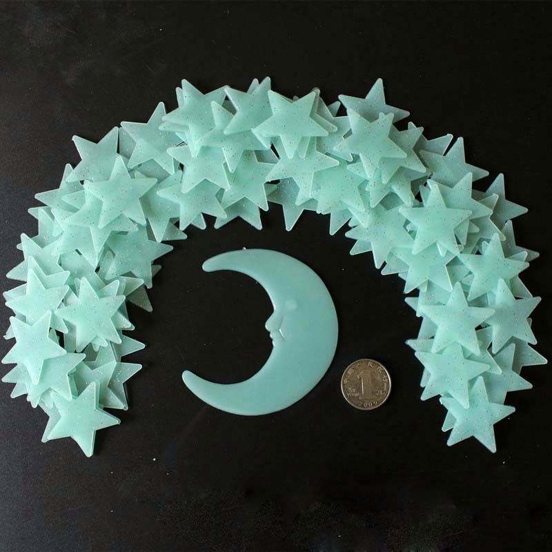 Autocollants 3D Étoiles et Lune Fluorescents Pas Chers pour Sac Opp, Effet Nuit Étoilée dans l'Obscurité et Populaires
