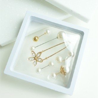 Opportunity Workshop 6-Piece Pearl Cubic Brooch Set with Transparent Storage Case Fashion Brooches for Clothing Apparel Sewing