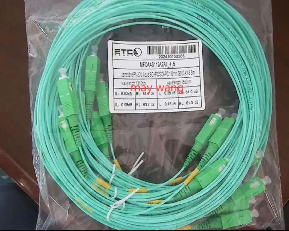 Cordon de raccordement optique Sc/apc Cordon de raccordement à fibre optique sc Jarretière Aqua Turquoise 1.6mm 3.5m Cordon de raccordement à fibre optique Ftth