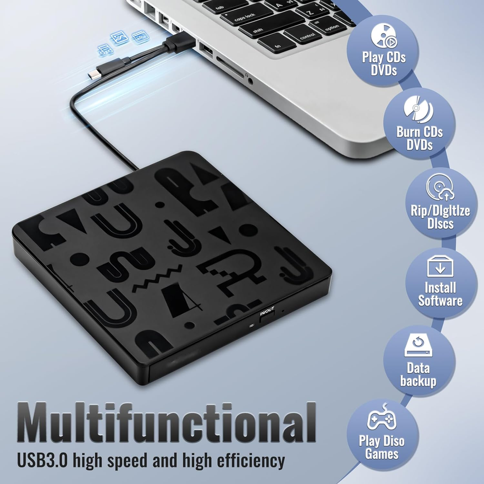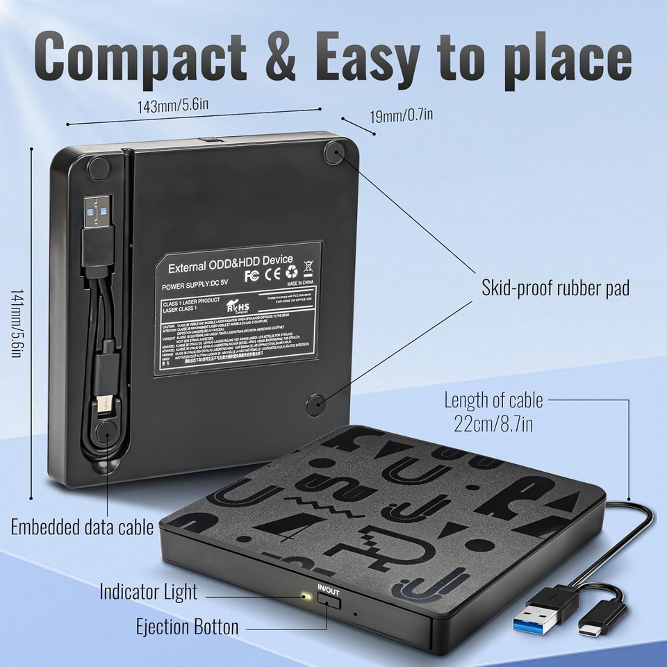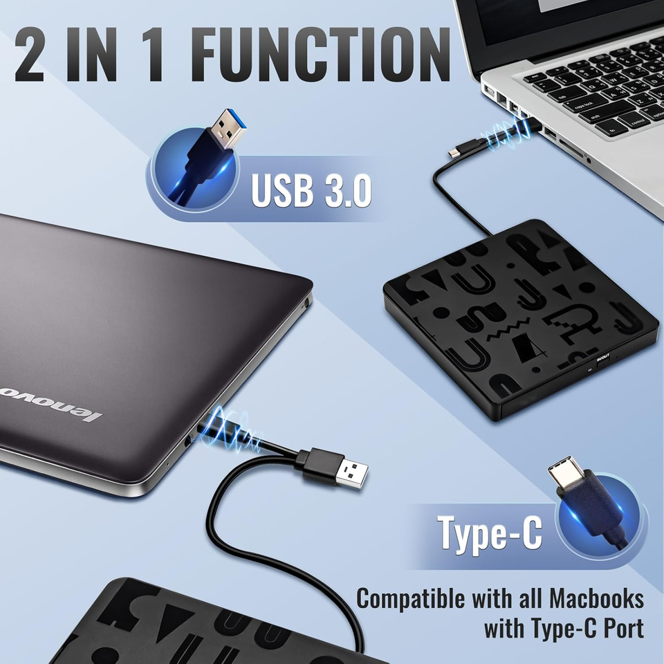 Graveur de CD/DVD-RW optique externe type-c + USB3.0 plateau de lecteur gratuit lecteur CD/DVD pour Mac Wins10 ordinateur portable usage domestique