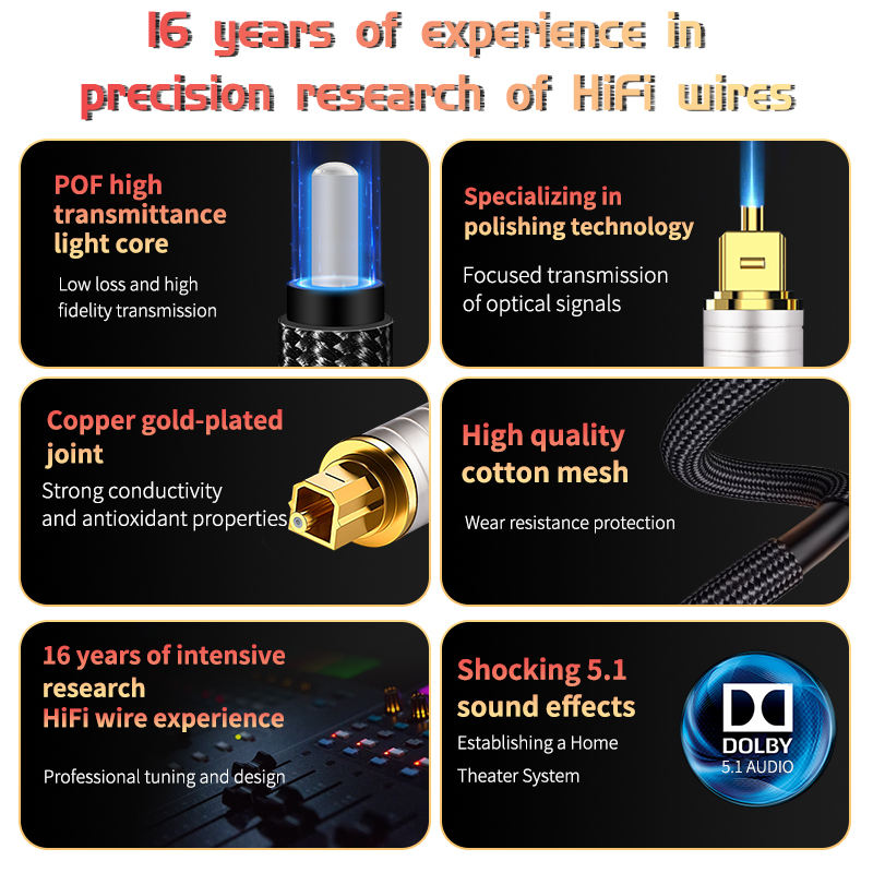 Câble audio numérique optique Toslink veste tressée S/PDIF cordon mâle à mâle pour barre de son Hi-Fi TV PS4 câble audio à Fiber optique