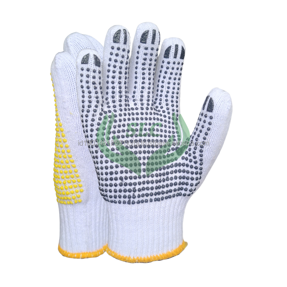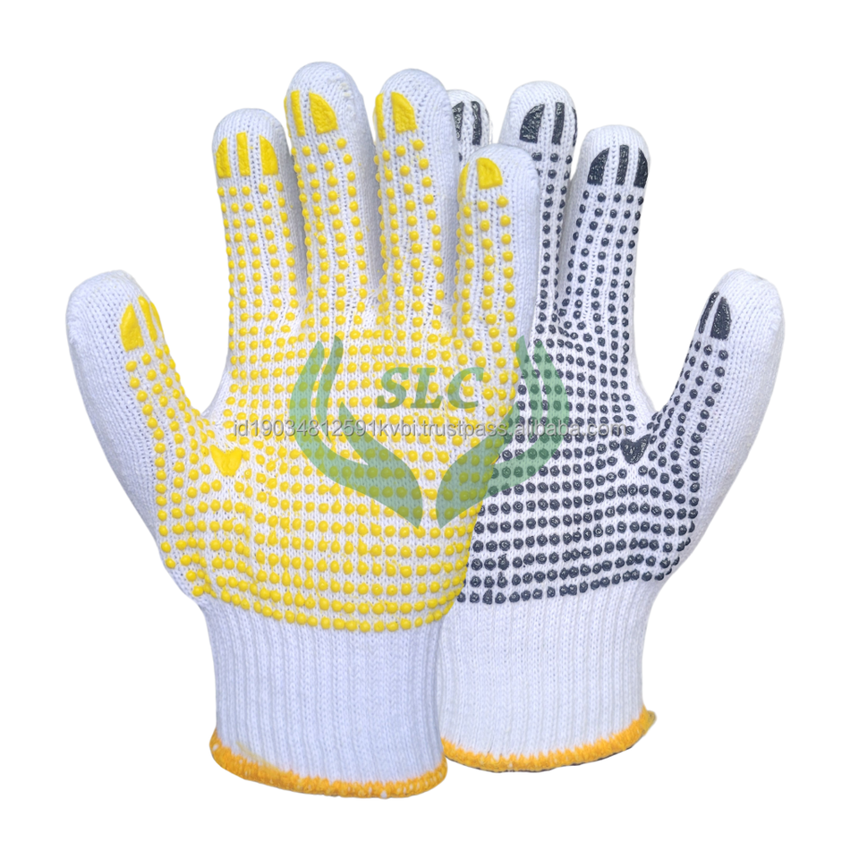 Gants en coton blanc Optimal Bleach pour une sécurité accrue, antidérapants avec des points, protection confortable des mains pour une utilisation industrielle