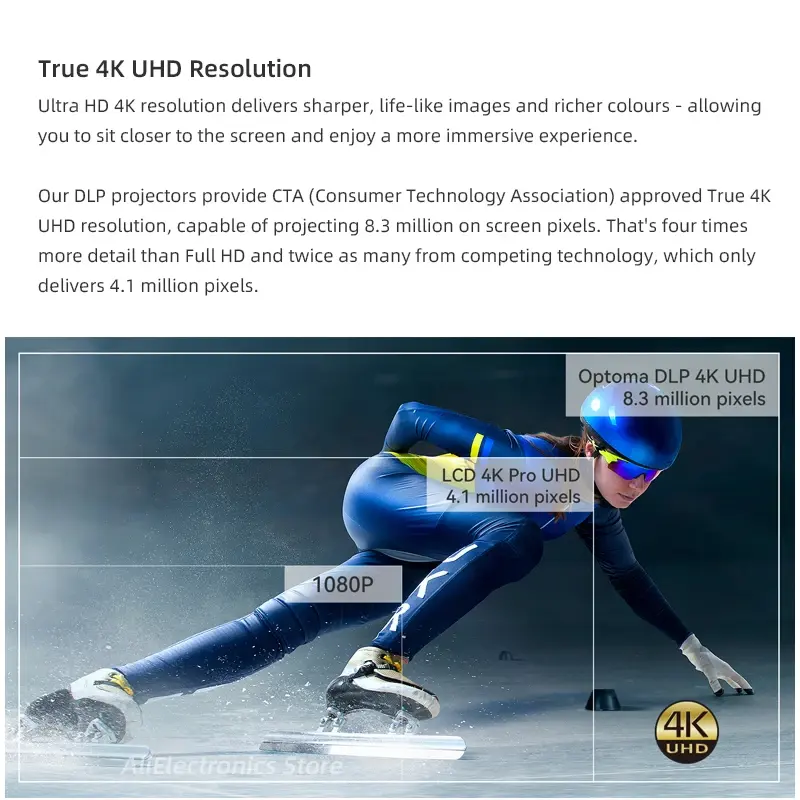 Projecteur Laser Optoma 4K UHZ616 DMD de 0,65" 4000 Lumens Zoom Optique 1,6x HDR Vidéo Cinéma pour Home Cinéma et Jeux