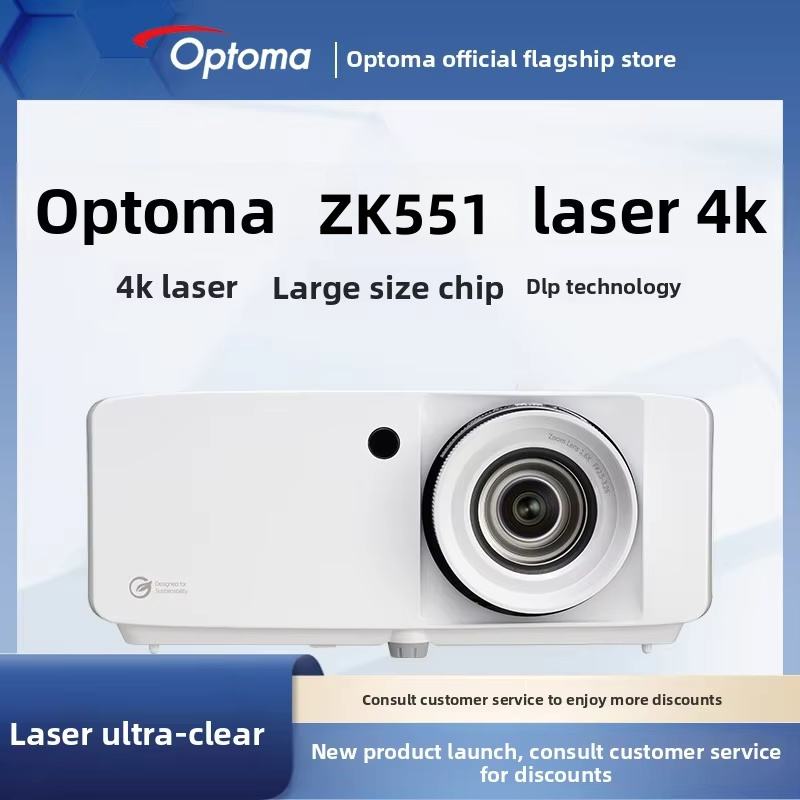 Projecteur de cinéma maison portable Optoma ZK551, 5100 lumens, laser 4K Ultra-HD, 3D, sans écran, cinéma privé en intérieur