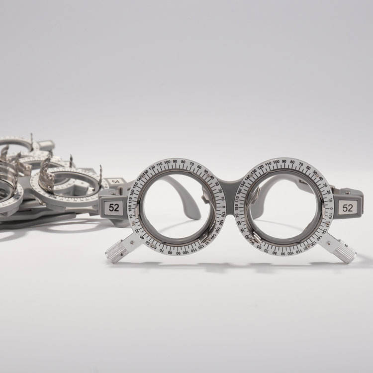 Montures d'essai d'optométrie à branches réglables 52 mm Gris – Équipement manuel pour examen de l'acuité visuelle
