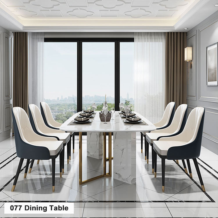 Table de salle à manger contemporaine en marbre avec accents métalliques sculpturaux Opulent Fusion