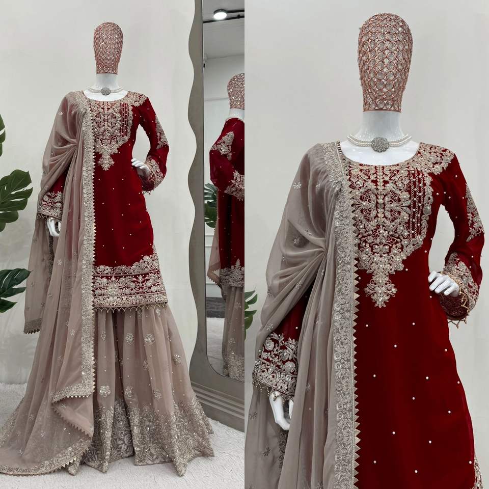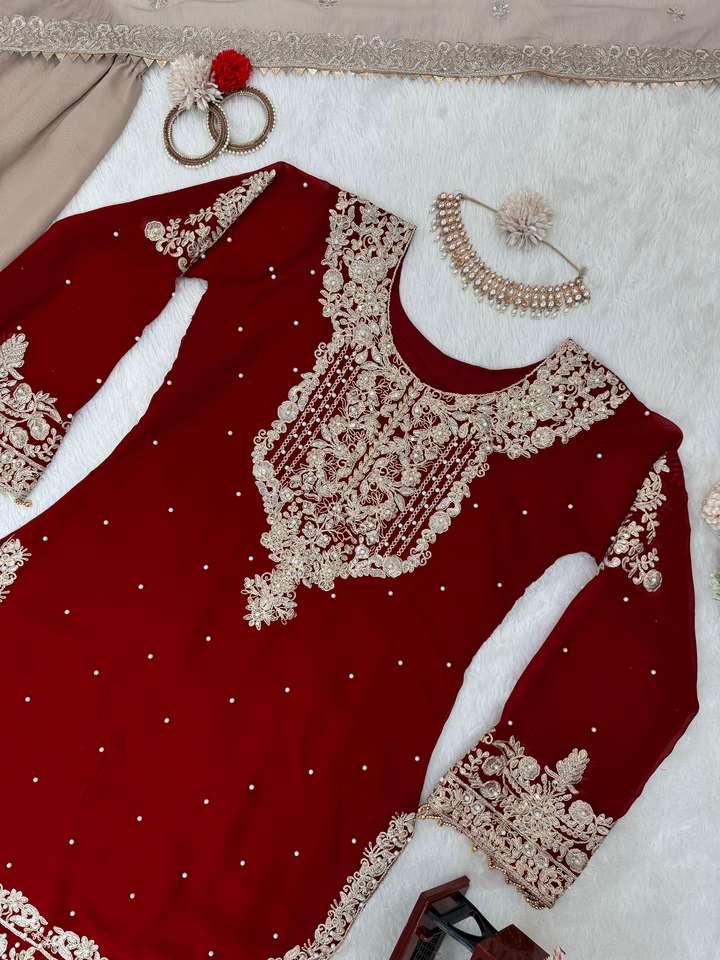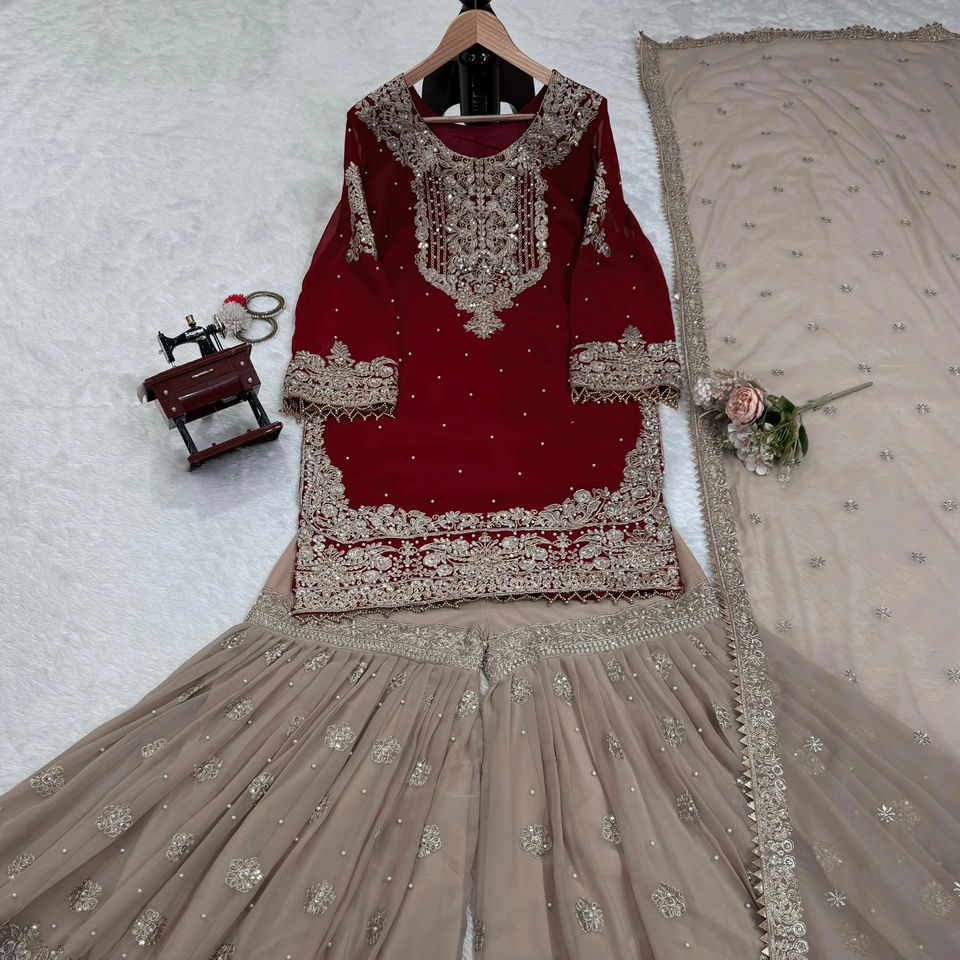 Ensemble de costumes de créateur de couleurs Opulent Signature en fausse georgette de qualité supérieure avec intérieur sans couture et codage et séquence exquis