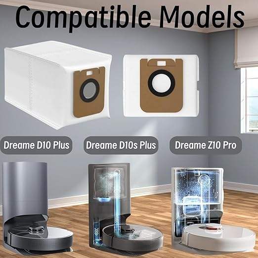 Aspirateurs robots Or Dreame D10 Plus RLS3D / D10s Plus / Z10 Pro, 4 sacs d'aspirateur à grande capacité, auto-scellants, étanches
