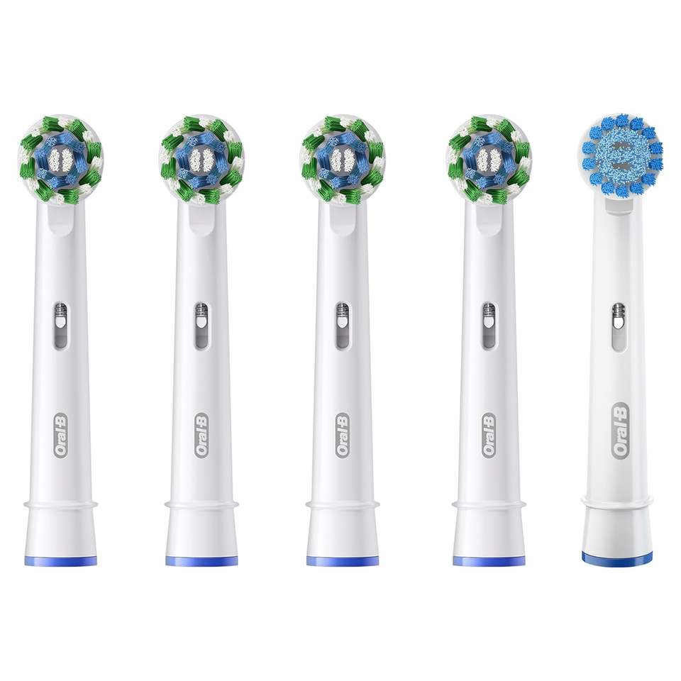 Têtes de brosse de rechange pour brosse à dents électrique Oral-B FlossAction, blanches, lot de 4 + 1 sensible blanche