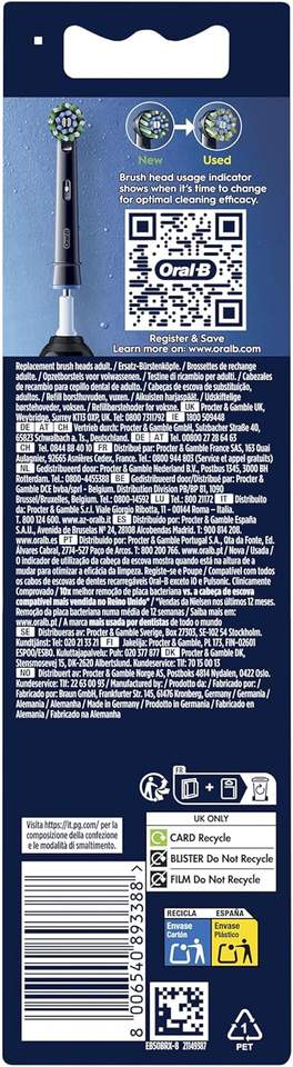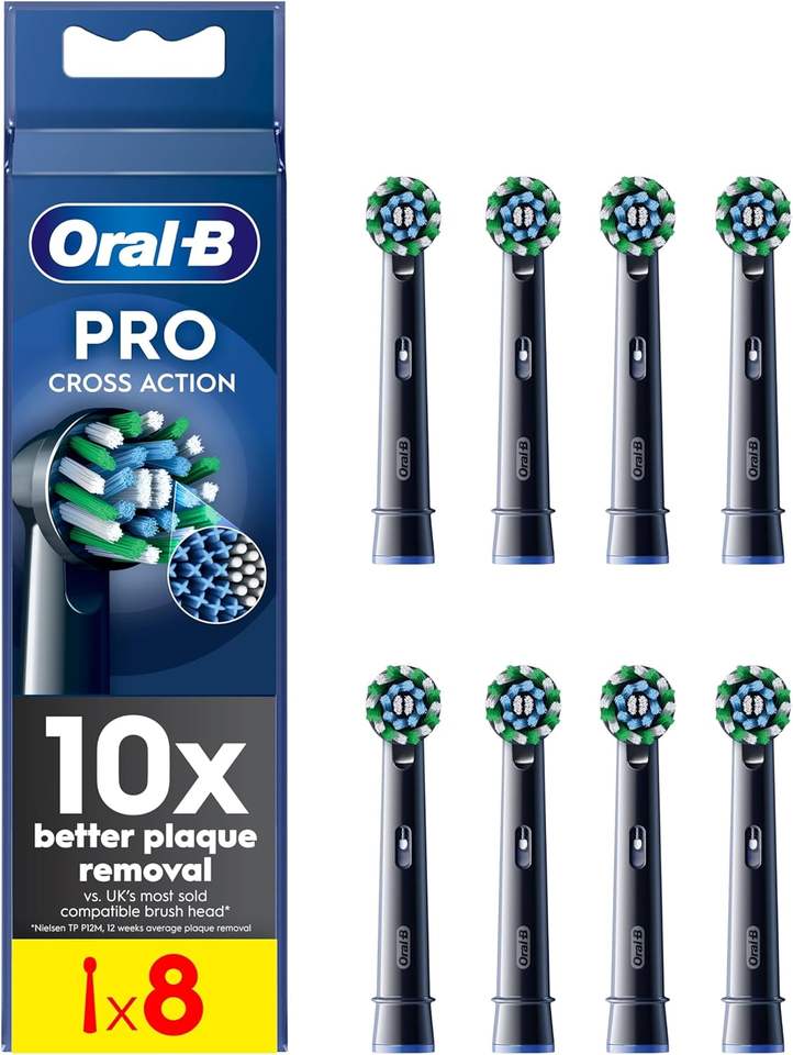 Têtes de brosse à dents électriques Oral-B Pro Cross Action, poils souples en nylon angulés pour une élimination plus profonde de la plaque dentaire, usage domestique, lot de 8