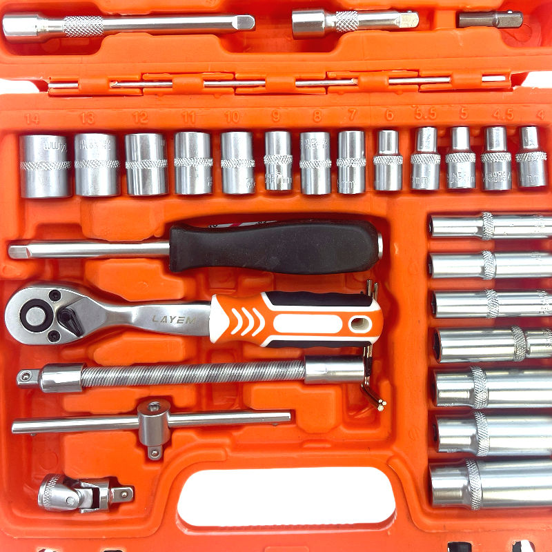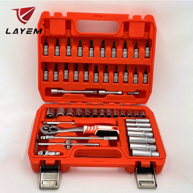 Boîtes à outils combinées orange à 72 dents Ensemble de 53 pièces à cliquet poli Autres outils à main du mécanicien Mallette rigide OEM personnalisable