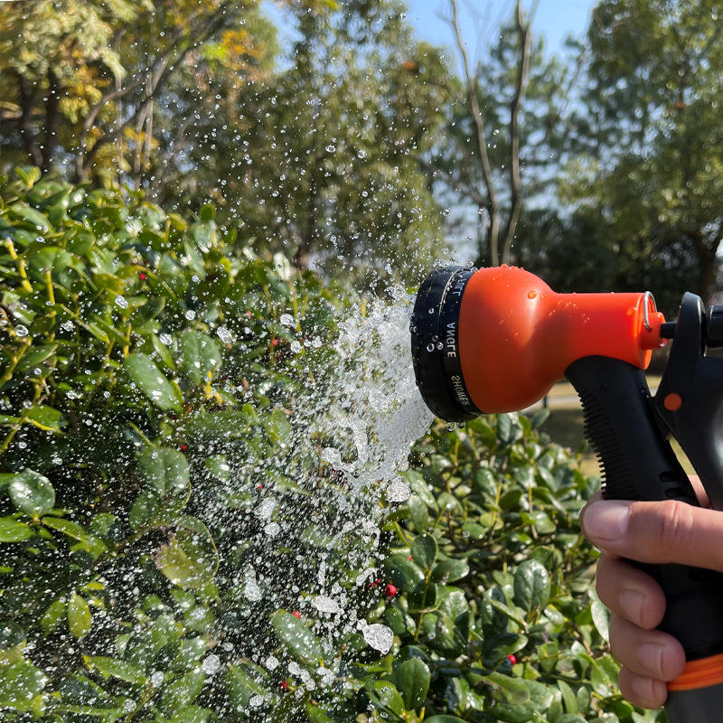 Orange & Black 8-Mode Gun Mist Angle Soaker Shower Flat Center Cone Full pour arroser les plantes, laver les voitures et les animaux domestiques