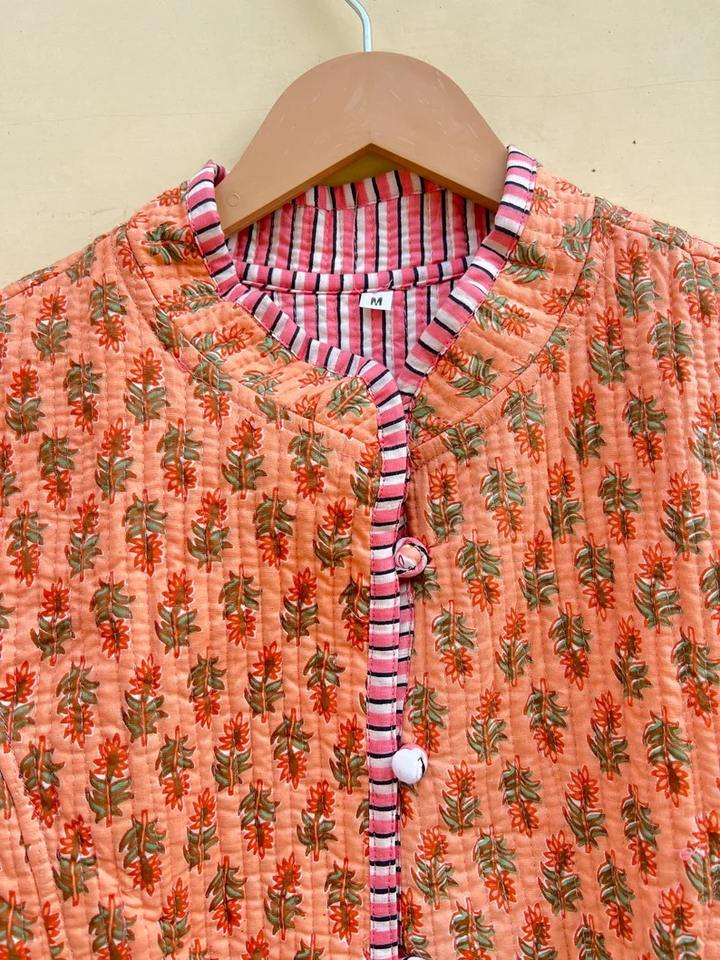Veste imprimée à blocs orange Veste matelassée en coton imprimé à la main réversible Manteau Veste courte Femme